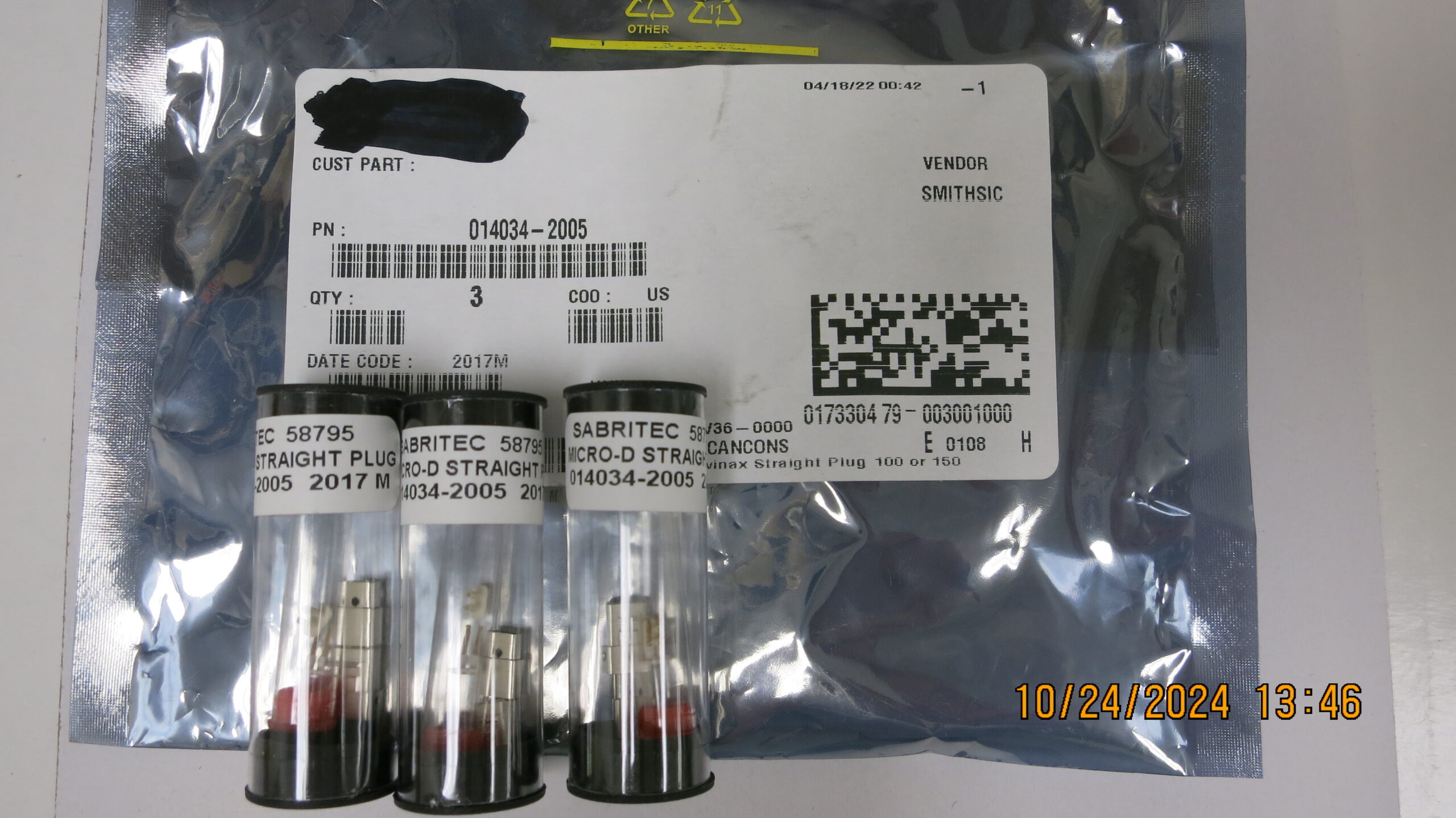 Smiths Interconnect / Sabritec, DC20; C/O US; HS: 8536.69; Micro-D Twinax Straight Plug 100 or 150 Ohm; EAR99