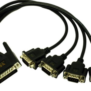 The board can be plugged into Standard Height and Low-Profile PC cases. Mounted is the standard bracket, Low Profile is placed in the box. Also included is the adapter cable DB44HDF to 4 x DB9M (Pins and signals like on a PC).
