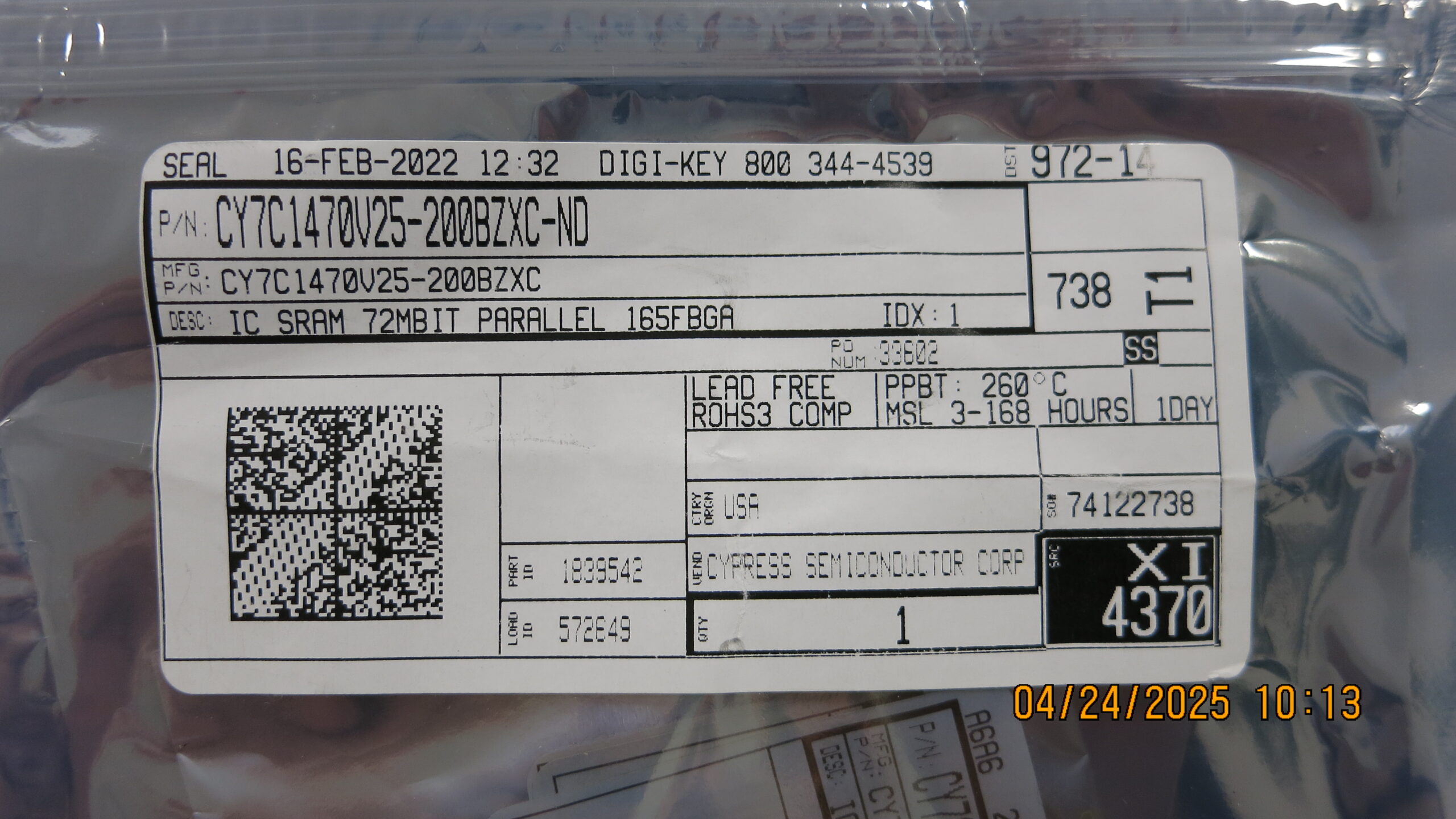 CY7C1470V25-200BZXC